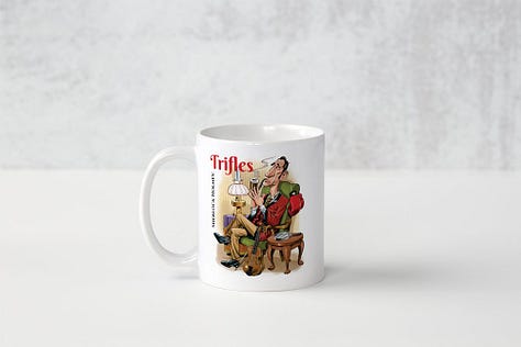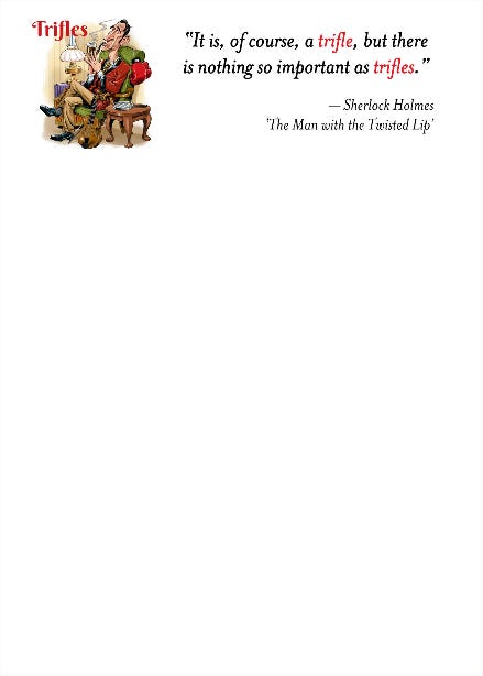Featured are mugs and notepads from our two Sherlock Holmes podcasts, I Hear of Sherlock Everywhere and Trifles.